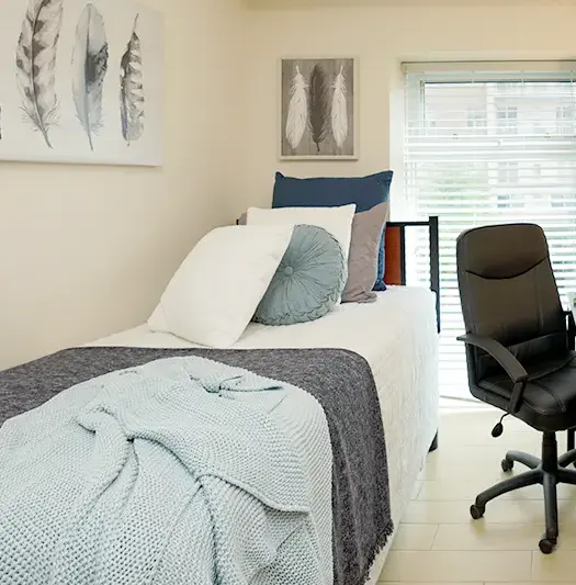 This fully furnished apartment offers shared living in spacious 5-bedroom suites, ideal for people who want community and convenience. Heat, water, and unlimited high-speed internet are included to make life simple. Plus, you’ll have direct access to Linden Square, your own on-site commercial hub where you can grab a bite, run errands, or get a haircut without ever leaving home.